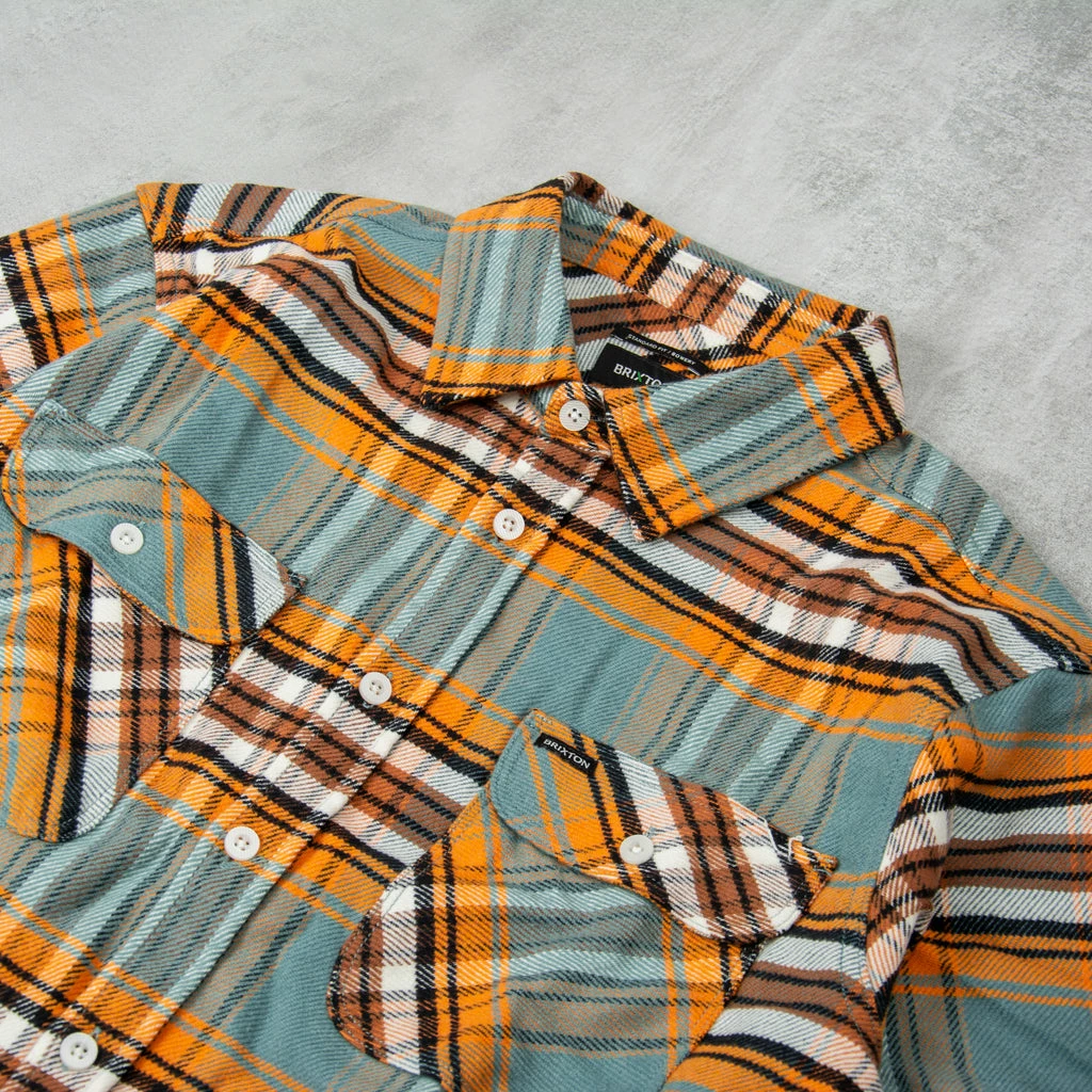Brixton Bowery Stretch Flannel - a durable flannel fabric. Built from cotton, repreve poly, and elastane it not only looks good but feels it too. It is topped it off with DWR coating for that extra bit of protection