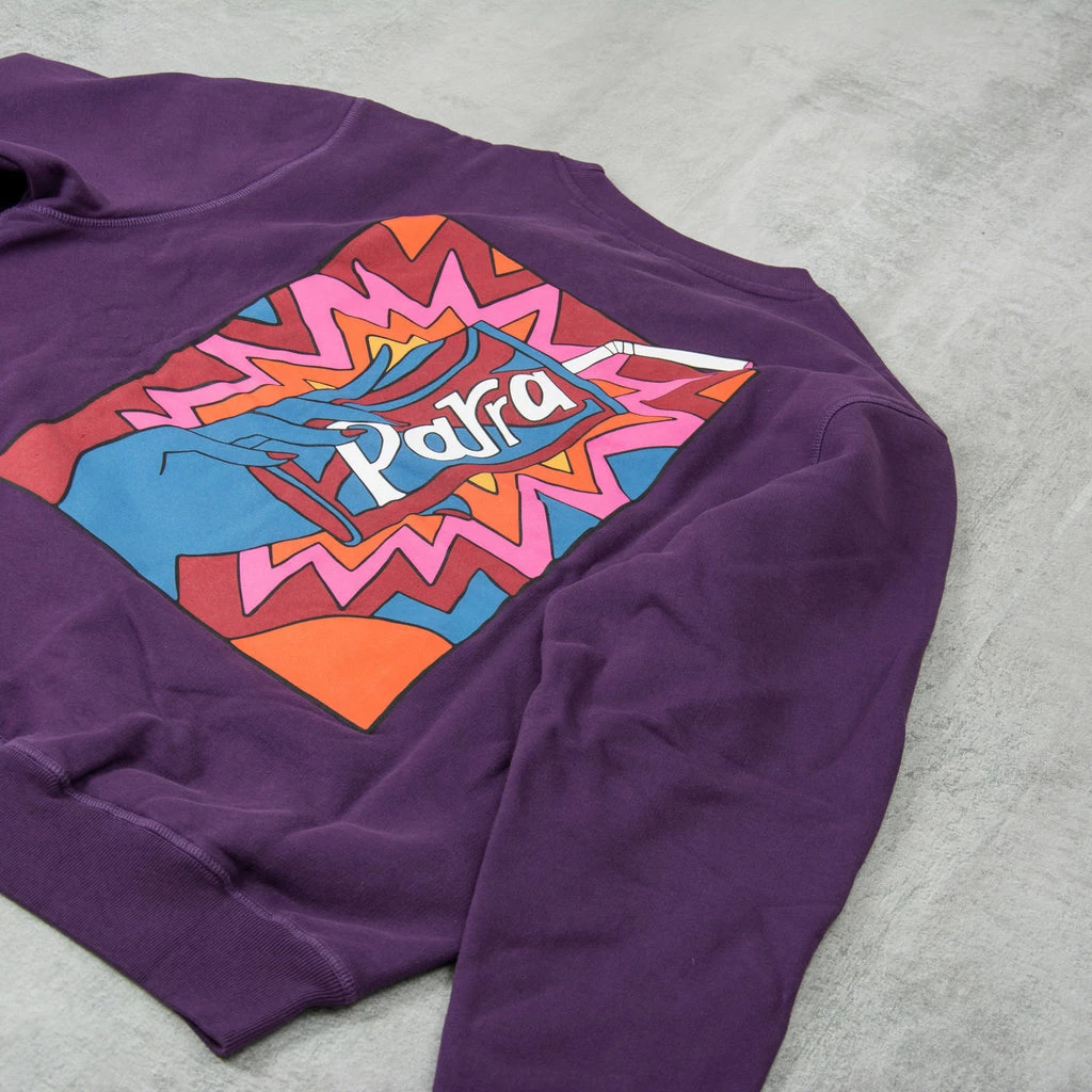 By Parra Rushed Sugar Crew Sweatshirt – classic crew sweat in heavy weight 100% Cotton, features a embroidery logo to the chest and a large Parra artwork print to the rear