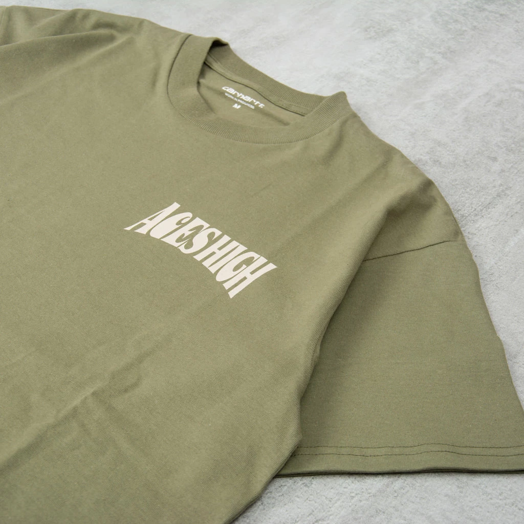 Carhartt WIP Aces Tee - woven from organic cotton jersey in a loose fit. It has short sleeves and is detailed with seasonal graphic prints on the chest and back.