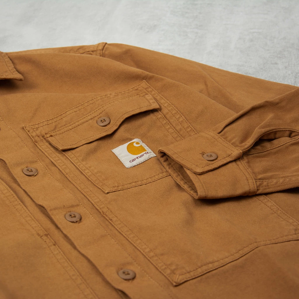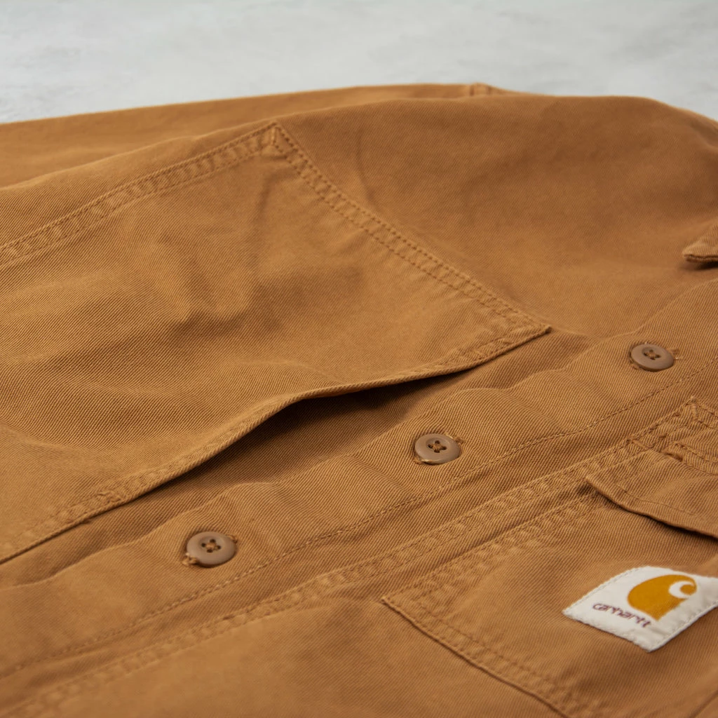 The Carhartt WIP Charter Shirt in Jasper is a heavyweight canvas overshirt design from the workwear titans. A patch pocket design to the front completes this minimal design. Oversized fit.