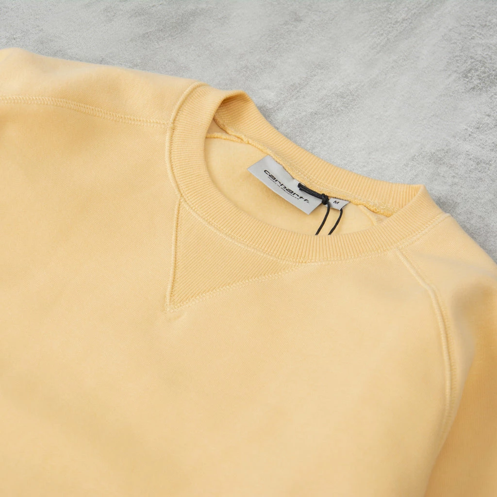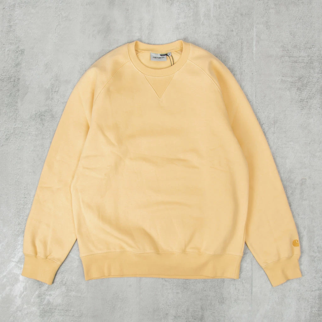 The Carhartt Chase Crew Neck Sweatshirt featuring flat lock stitching, raglan sleeves, and logo embroidery on sleeve, a wardrobe essential for all your activities