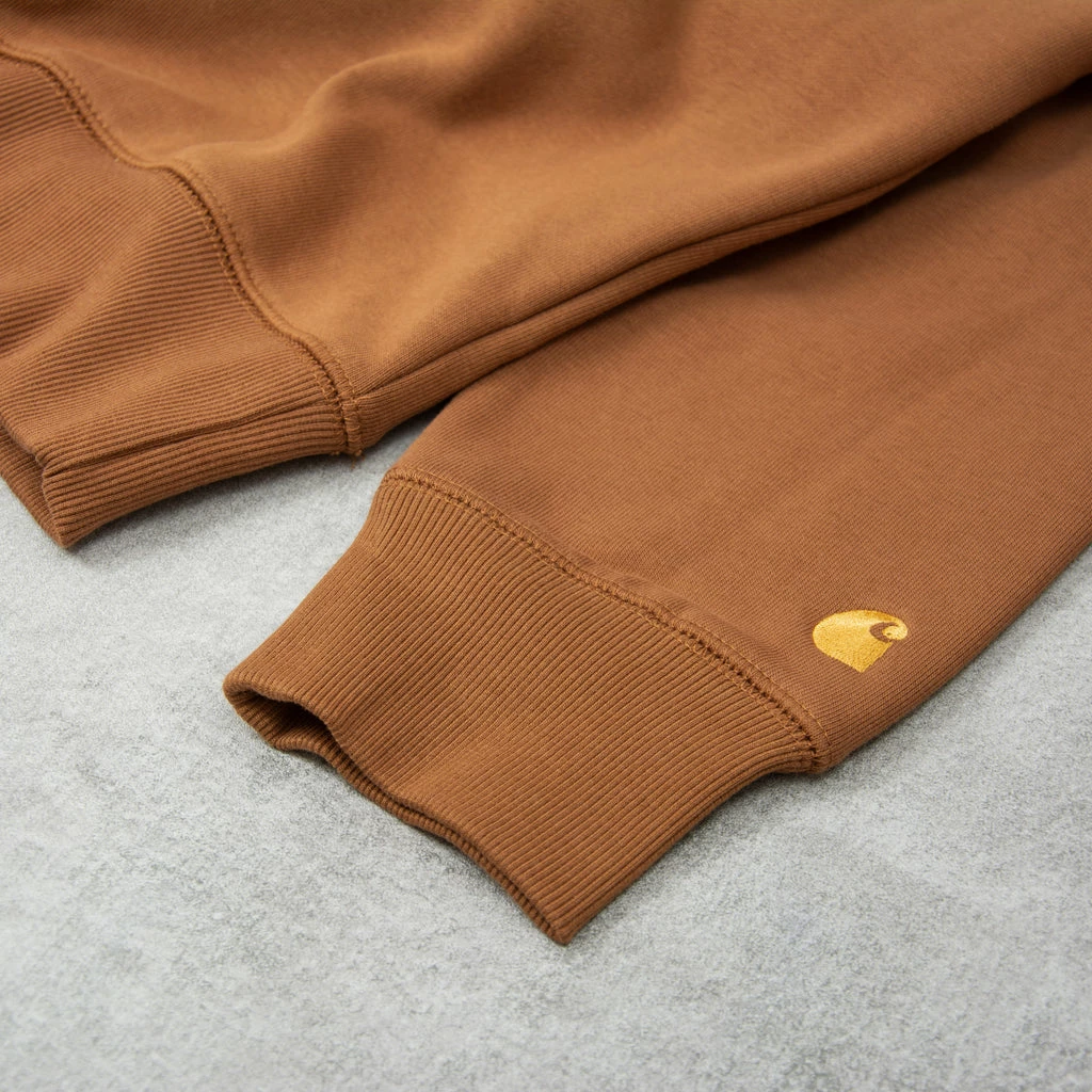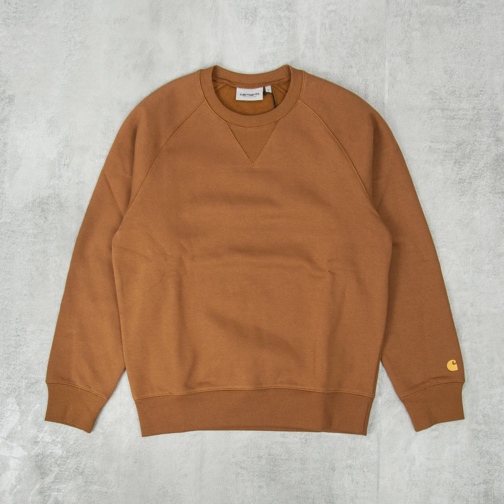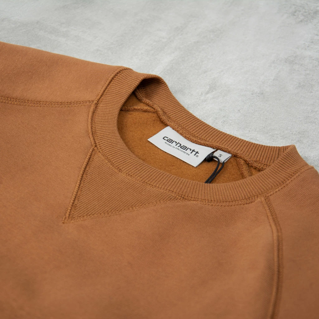 The Carhartt Chase Crew Neck Sweatshirt featuring flat lock stitching, raglan sleeves, and logo embroidery on sleeve.