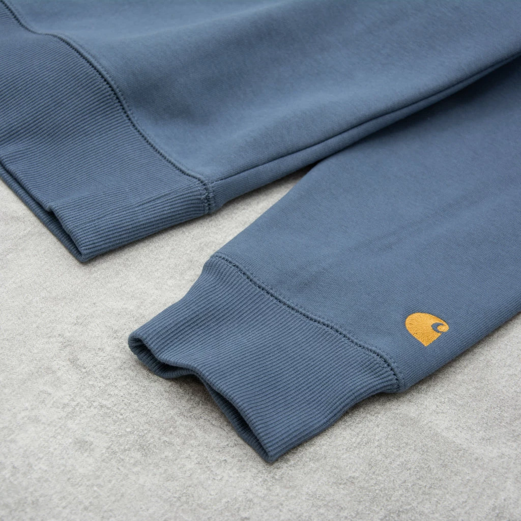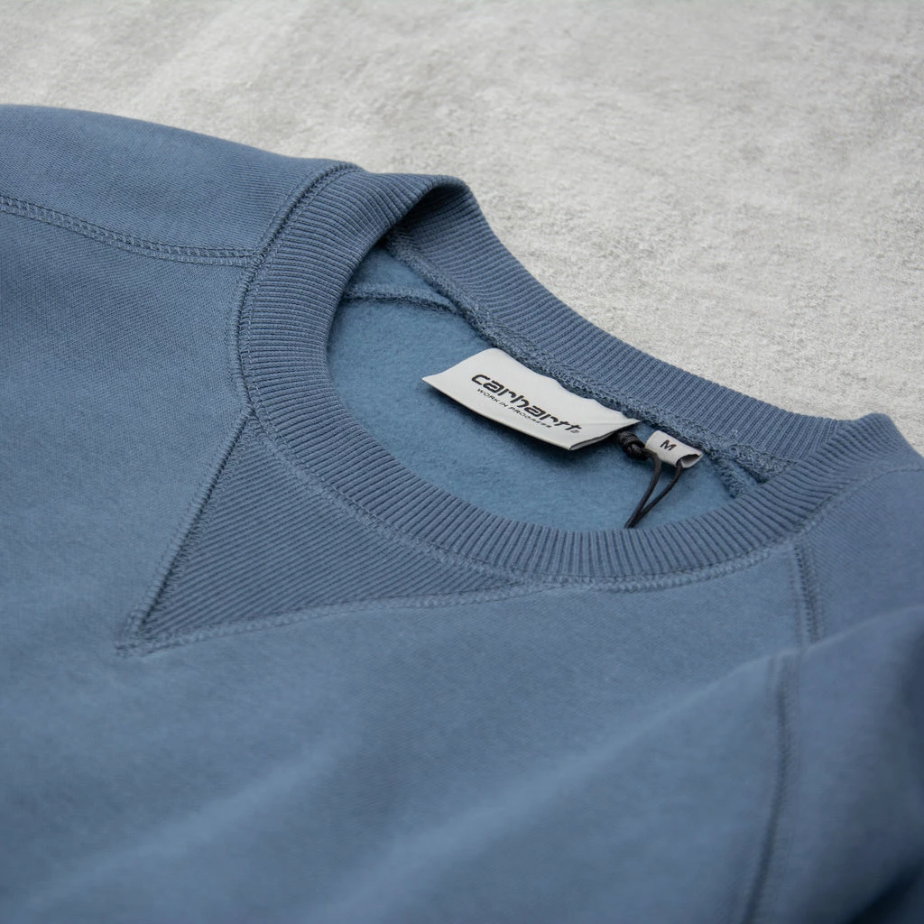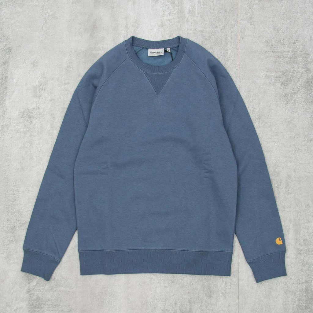 The Carhartt Chase Crew Neck Sweatshirt featuring flat lock stitching, raglan sleeves, and logo embroidery on sleeve.