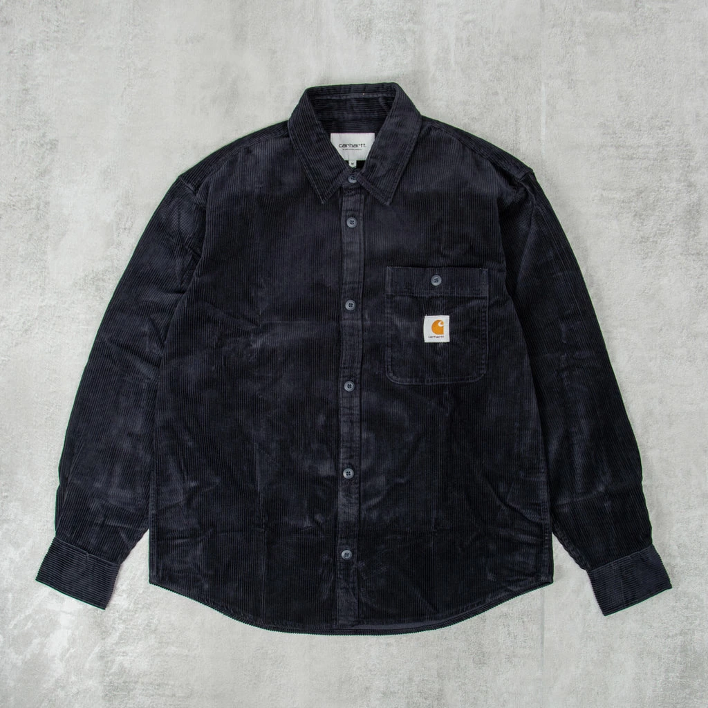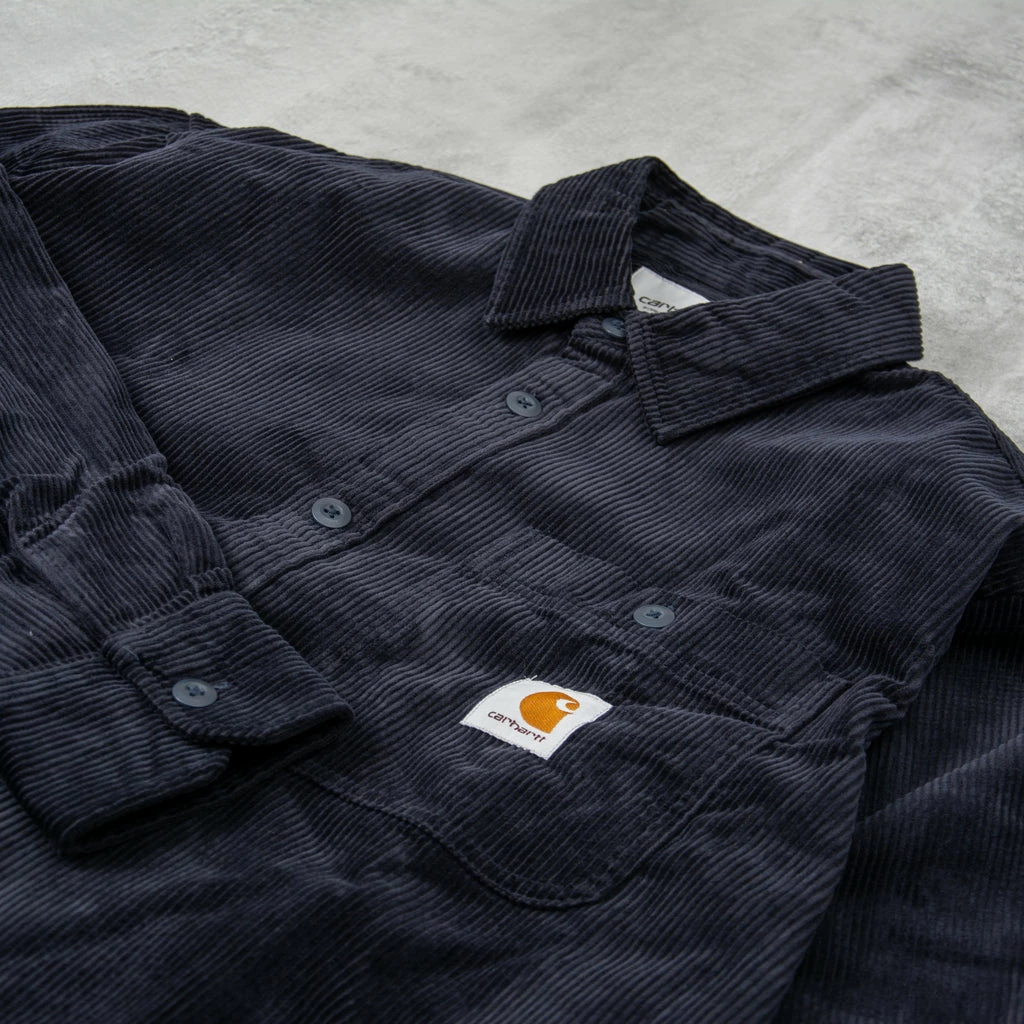 The Carhartt WIP L/S Flint Cord Shirt Constructed from heavyweight corduroy that has been rinsed for a softer feel on a looser fit. Curved hem, front button closure, and a single chest pocket with button closure and a woven Carhartt WIP logo.
