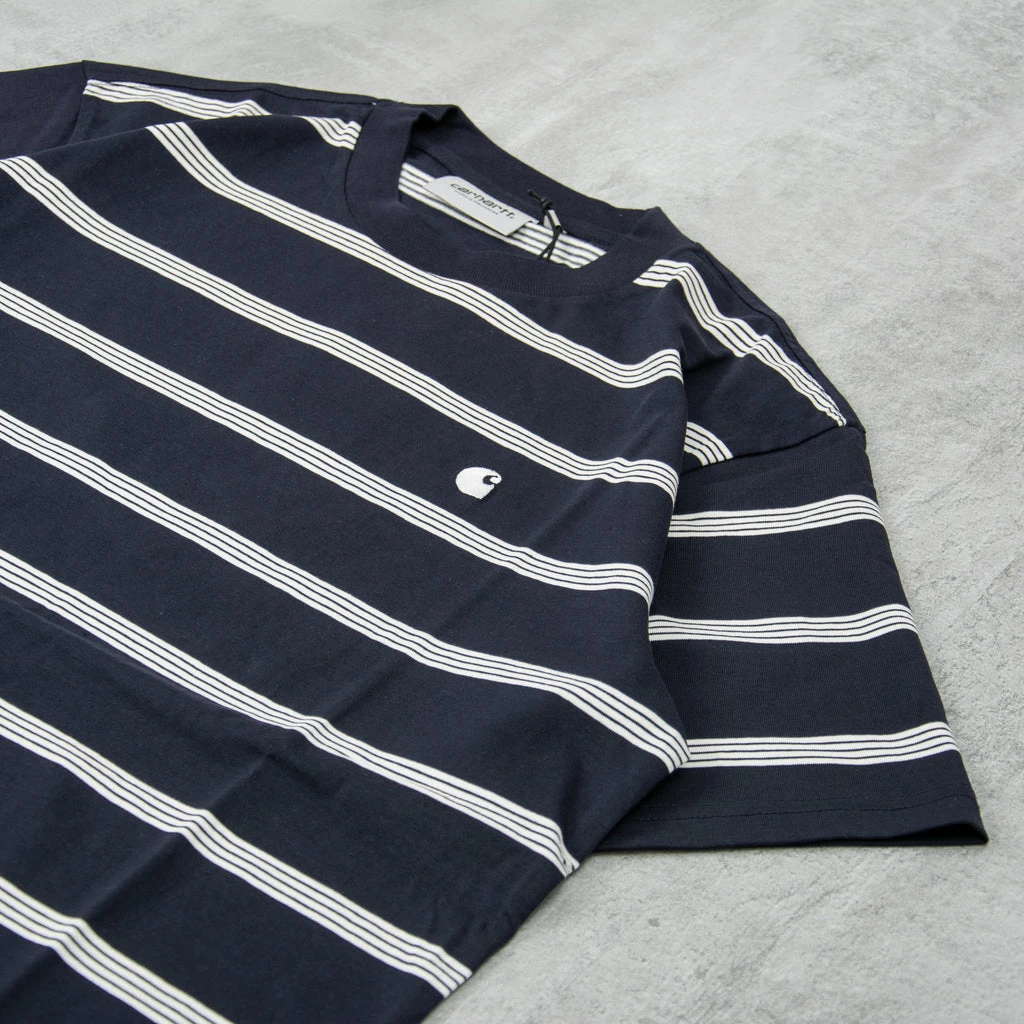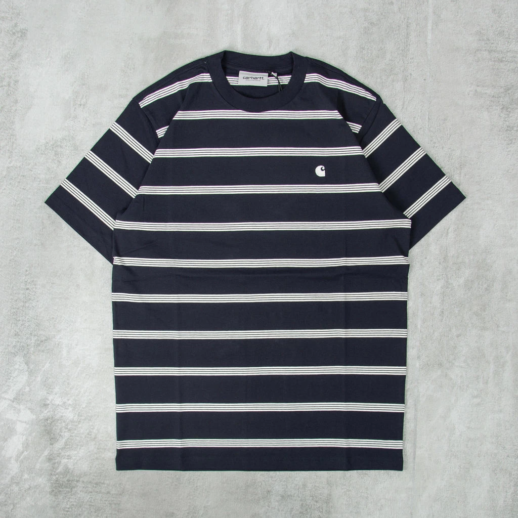 The S/S Glover T-Shirt is cut from lightweight cotton jersey in a regular fit, and features allover yarn-dyed stripes, for a deeper and longer lasting color. An embroidered Carhartt WIP ‘C’ Logo appears on the left chest.