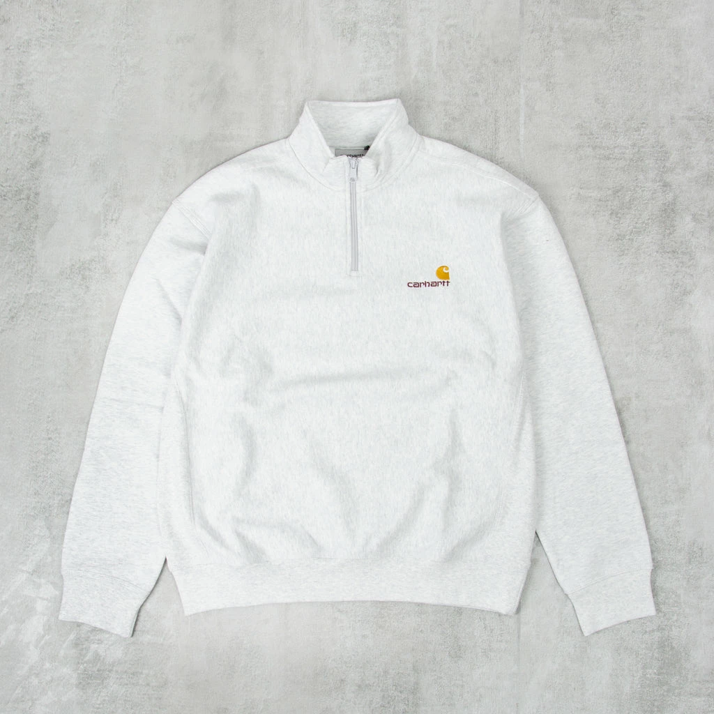 The Carhartt WIP Half Zip American Script Sweat in Natural is a poly cotton blended sweat in a loose, box fit. This versatile garment is finished with a half zipper and American Script embroidery to the chest.