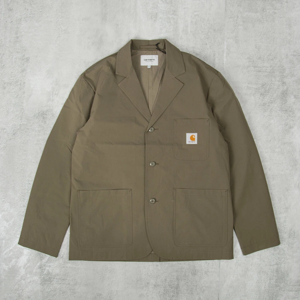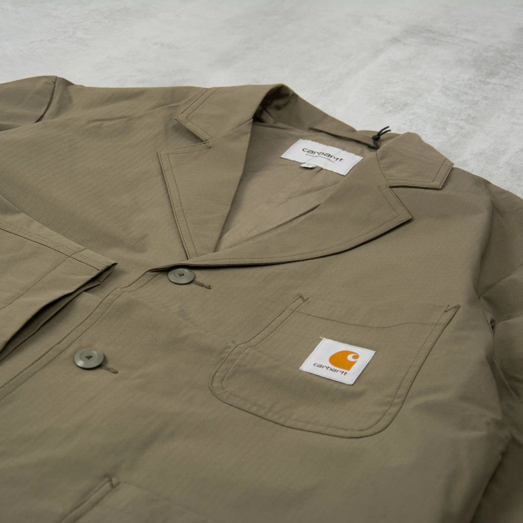 Carhartt WIP Montana Blazer is straight fit utilitarian aesthetic straight fit blazer, featuring a high button line with 2 inside pockets. Made from a 3.8 oz polyester ripstop fabric with a cotton lining.