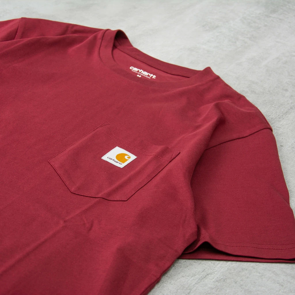 The Carhartt WIP S/S Pocket Tee is a regular fitting T-shirt made from 100% Cotton Single Jersey, 175 g/sqm. It features a front chest pocket with a classic branded label.