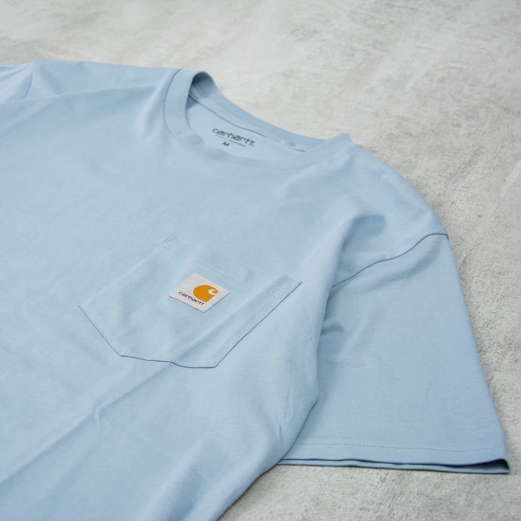 The Carhartt WIP S/S Pocket Tee is a regular fitting T-shirt made from 100% Cotton Single Jersey, 175 g/sqm. It features a front chest pocket with a classic branded label.