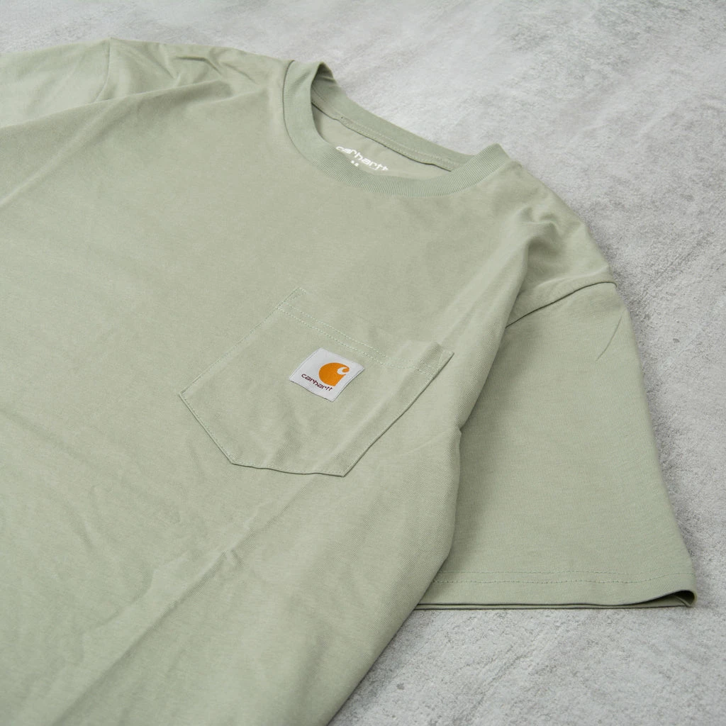 The Carhartt WIP S/S Pocket Tee is a regular fitting T-shirt made from 100% Cotton Single Jersey, 175 g/sqm. It features a front chest pocket with a classic branded label.