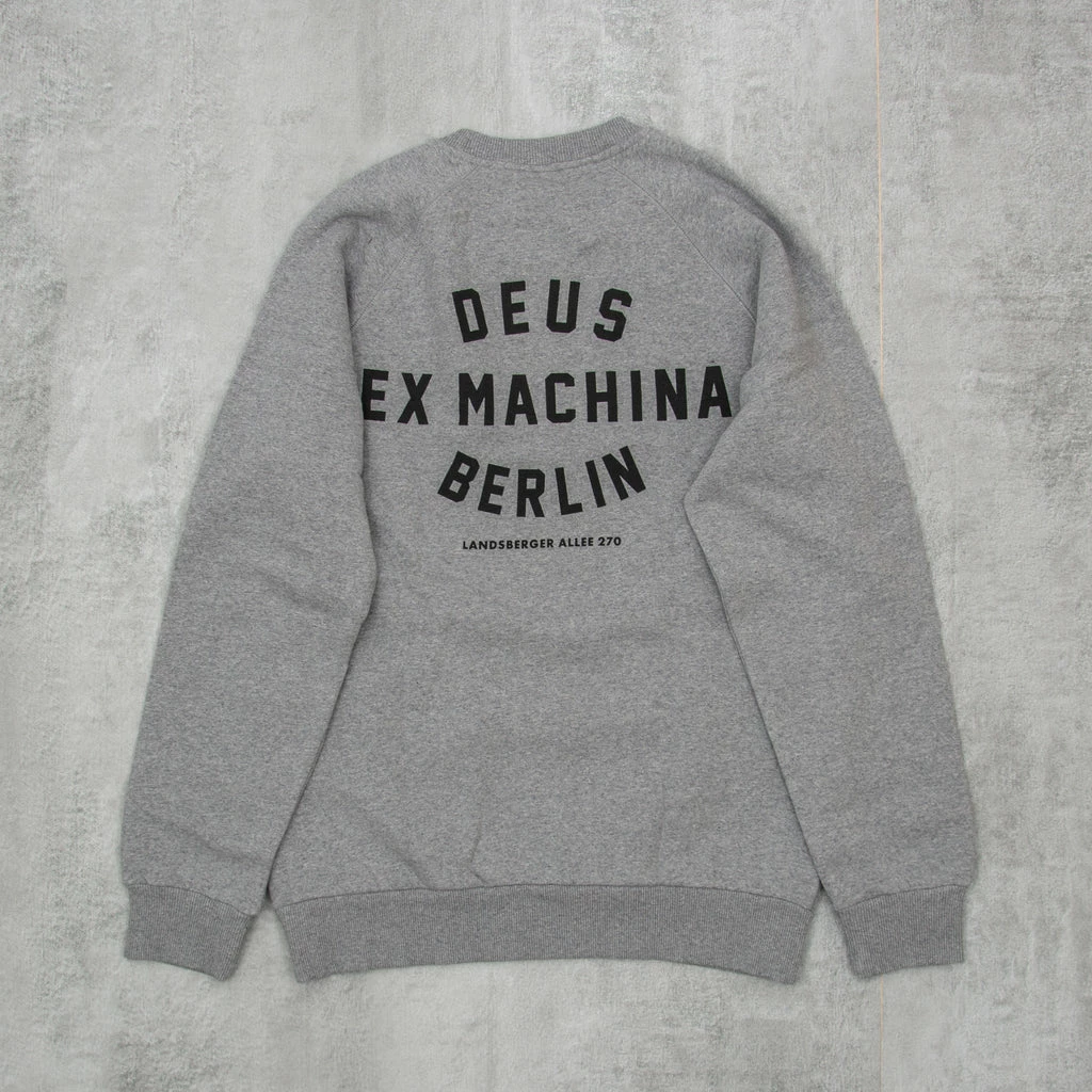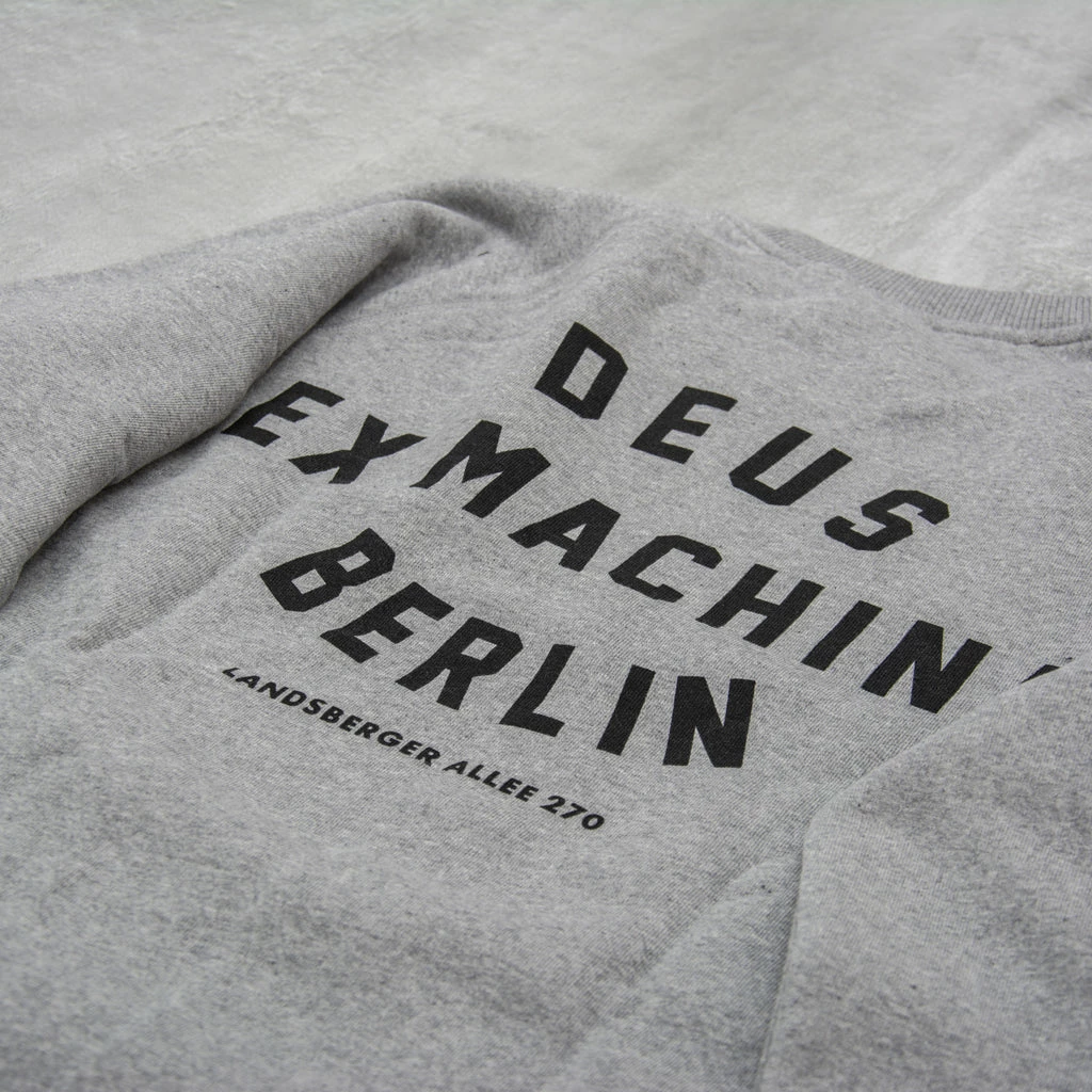 A standard-fit crewneck with the Deus Shield on the front & Berlin Address print on the back, made from 32/2s + 12/1s 350gm cotton brushed-back fleece.