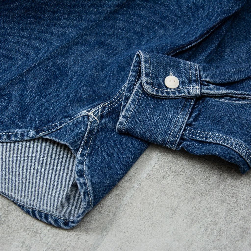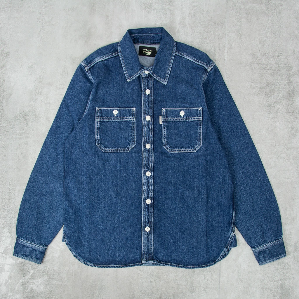 Deus ex Machina Boston Denim Shirt a regular fit shirt with workwear pockets and branded label pip in 100% cotton 1175oz denim fabrication. A staple icon in the workmen’s arsenal, the Boston Denim Shirt lends itself to serious business on and off the site.