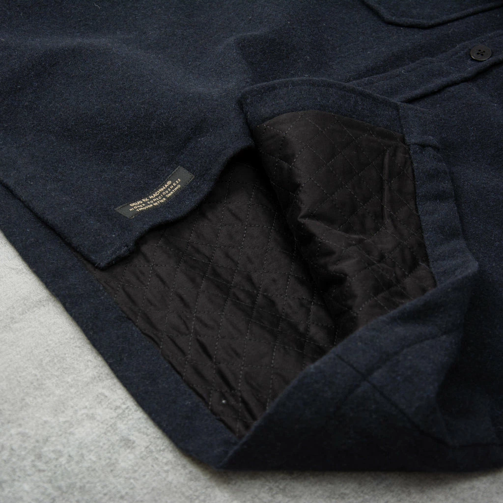 Deus ex Machina CPO Overshirt - Relaxed fit over shirt, Branded corozo buttons and branded woven label, Quilted padded lining in a wool mix serge fabrication with a light garment wash