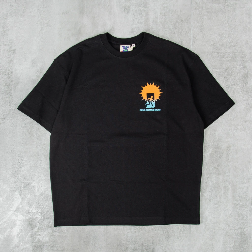 Deus ex Machina Earth Dance Tee in Black – This enzyme stone-washed Deus ex Machina Earth Dance Tee in Black features a box-fit with an oversized design, and displays a graphics on both the front and back.