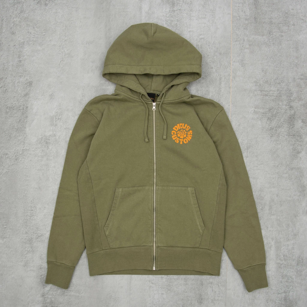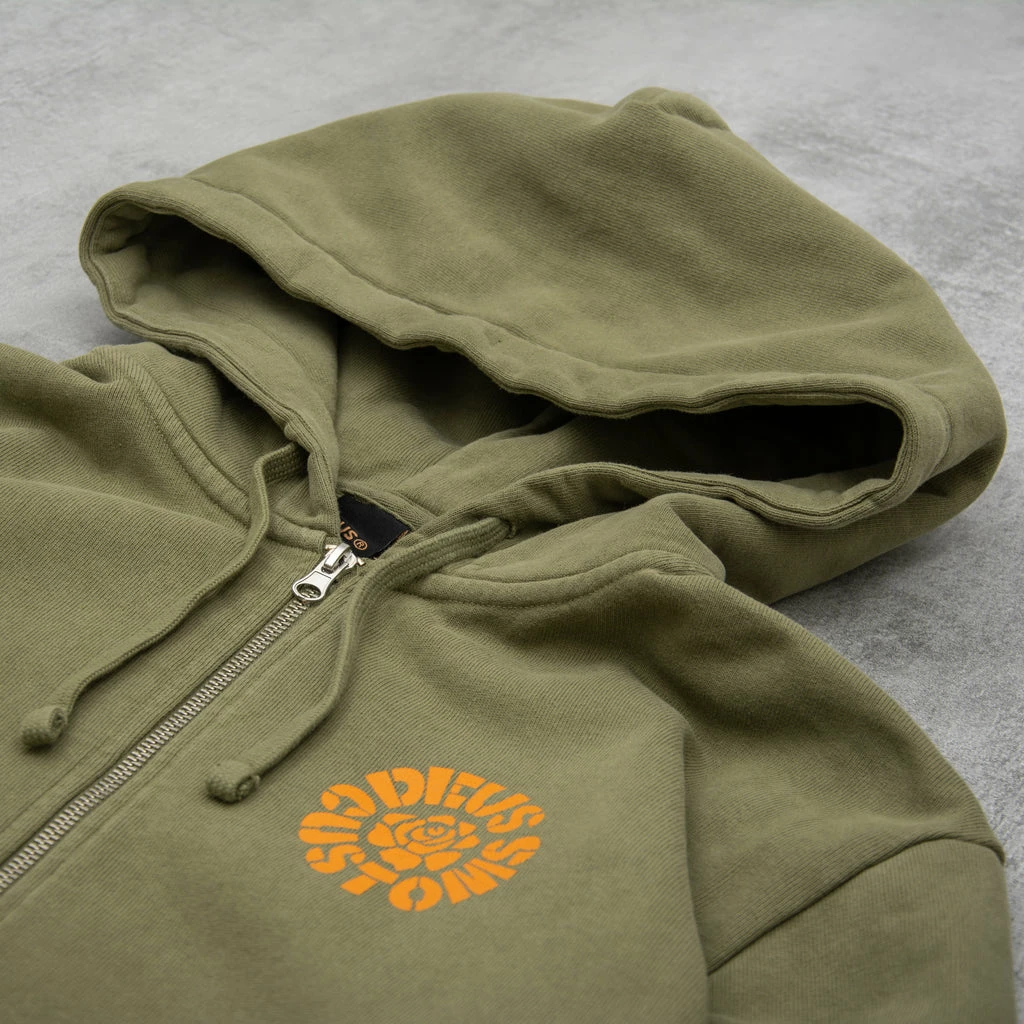 Deus ex Machina Elevation Zip Hoodie with a regular cut and zip closure with the Deus name printed on the chest and the brand name on the back.