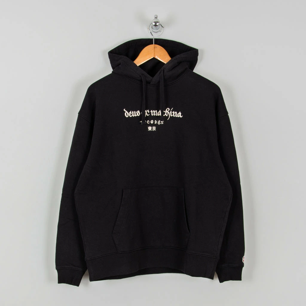 The Deus ex Machina Full Moon Hoodie In Black is a classic overhead drawcord hoodie with Deus logo and embroidery to the front and back print to the rear.