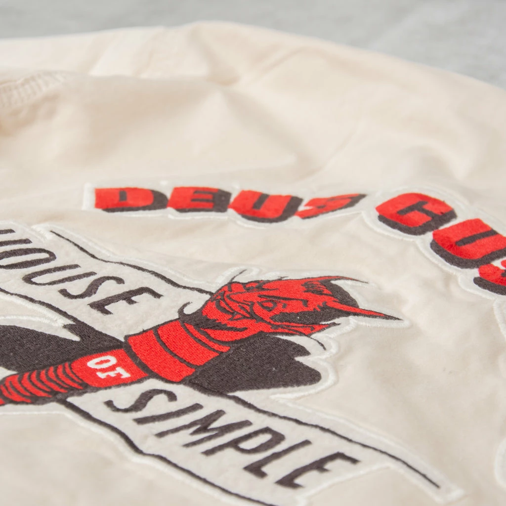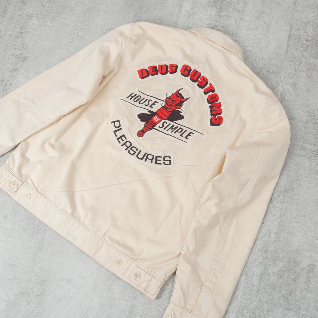 The Deus Ex Machina Pleasures Work Jacket blends practicality and modern style in to a utilitarian piece. Crafted from a robust 100% cotton sateen fabric, this jacket features a regular fit and is complete with front pockets, a chest patch, and back embroidered art. For long-lasting comfort, this jacket is finished with a heavy enzyme stone wash.