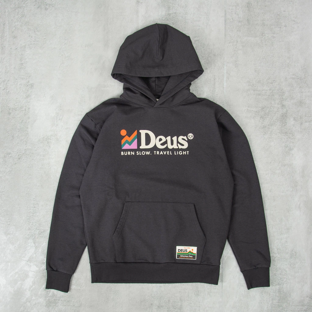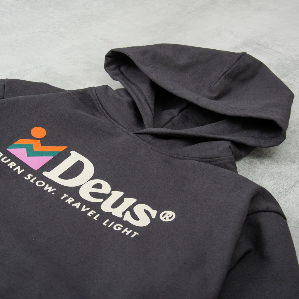 The Deus Ex Machina Rubble Hoodie in Anthracite is mid weight garment washed hoodie featuring the seasonal Rubble print on the front and a woven label on the kangaroo pocket.