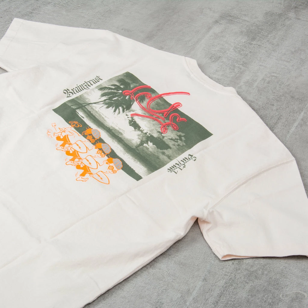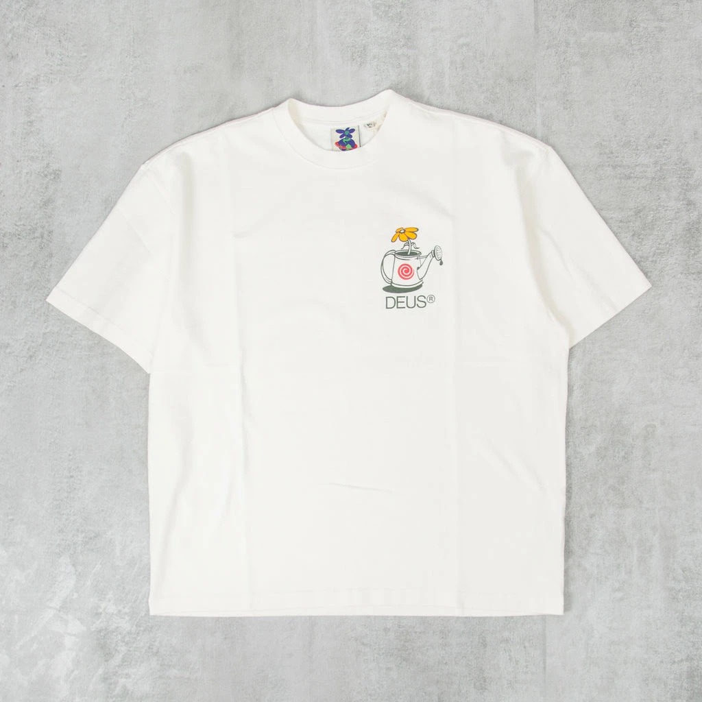Deus ex Machina Trust Tee in Vintage White – This Deus ex Machina Trust Tee is enzyme stone washed with a box fit and oversized design. It features a front and back graphic printed in Vintage White.