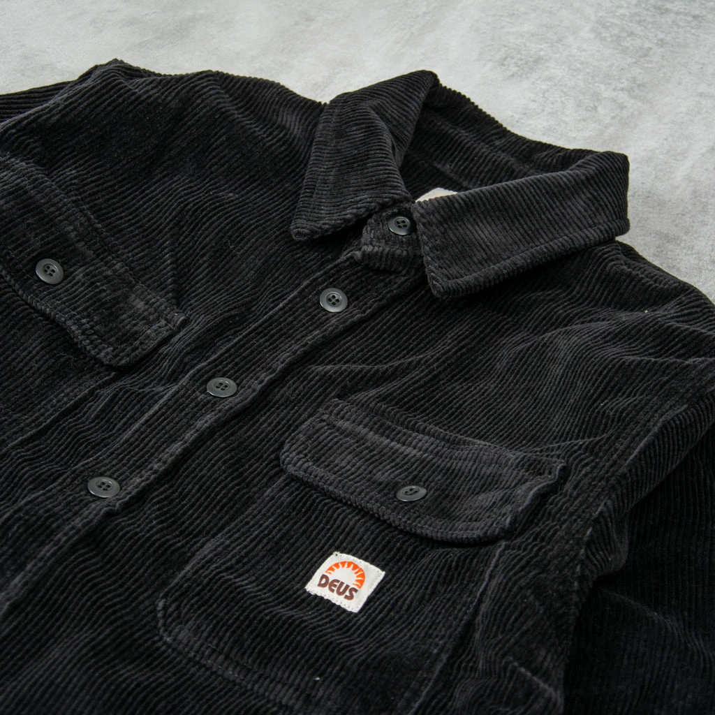 Deus ex Machina Vacay Cord Shirt a regular fit heavyweight corduroy work shirt featuring two pocket design with appliqued logo.