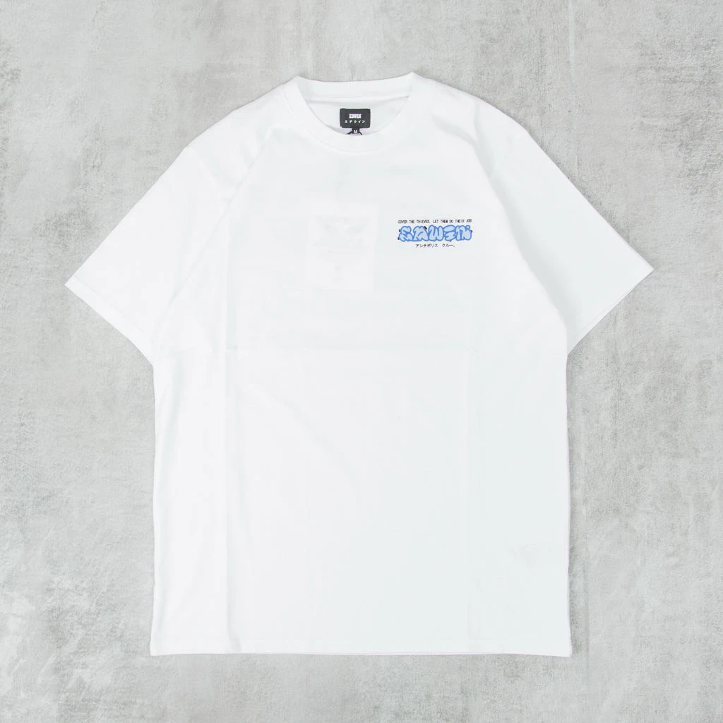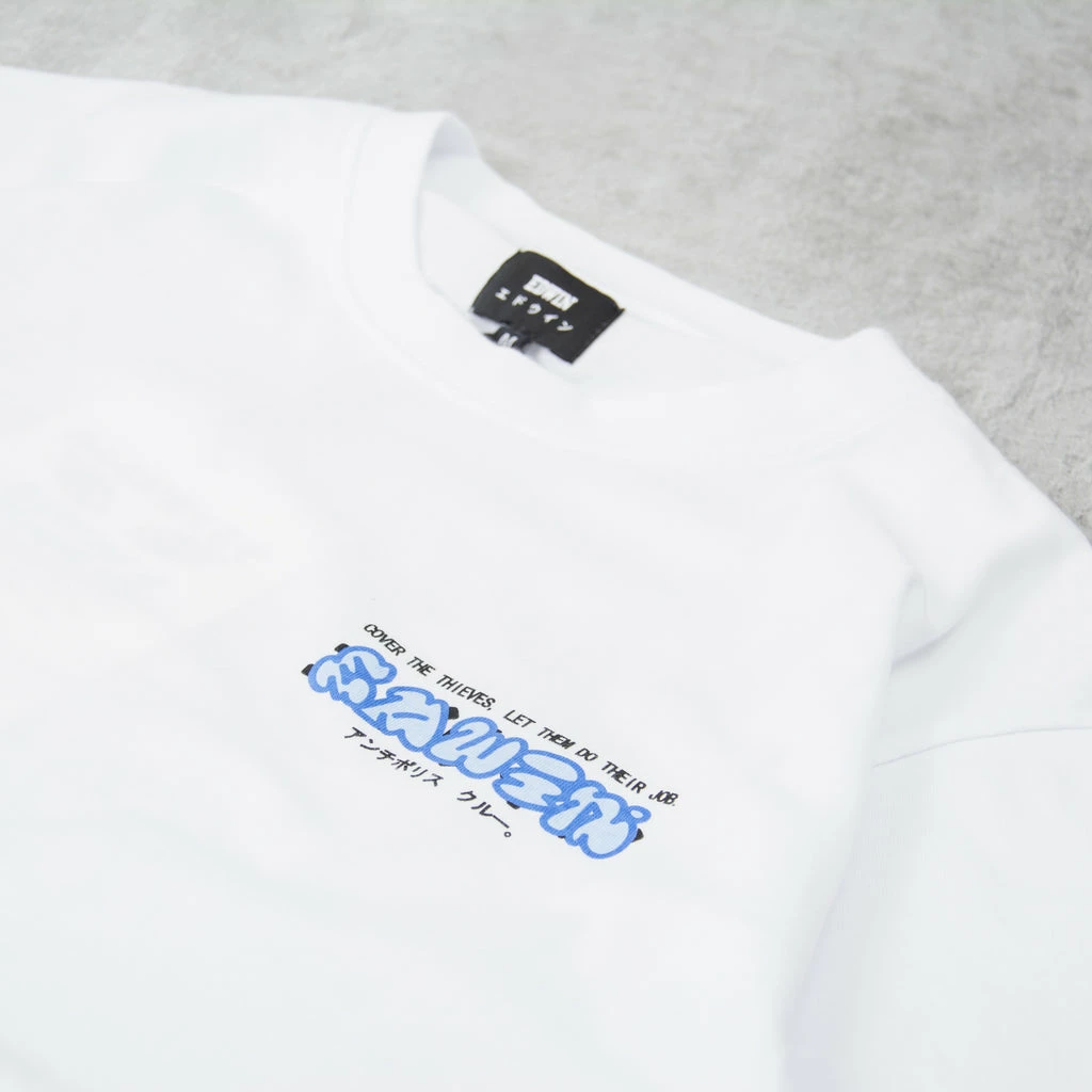 Edwin Cover the Thieves Tee – regular fit in 100% garment washed Cotton, featuring a exclusive Edwin print to the front and rear