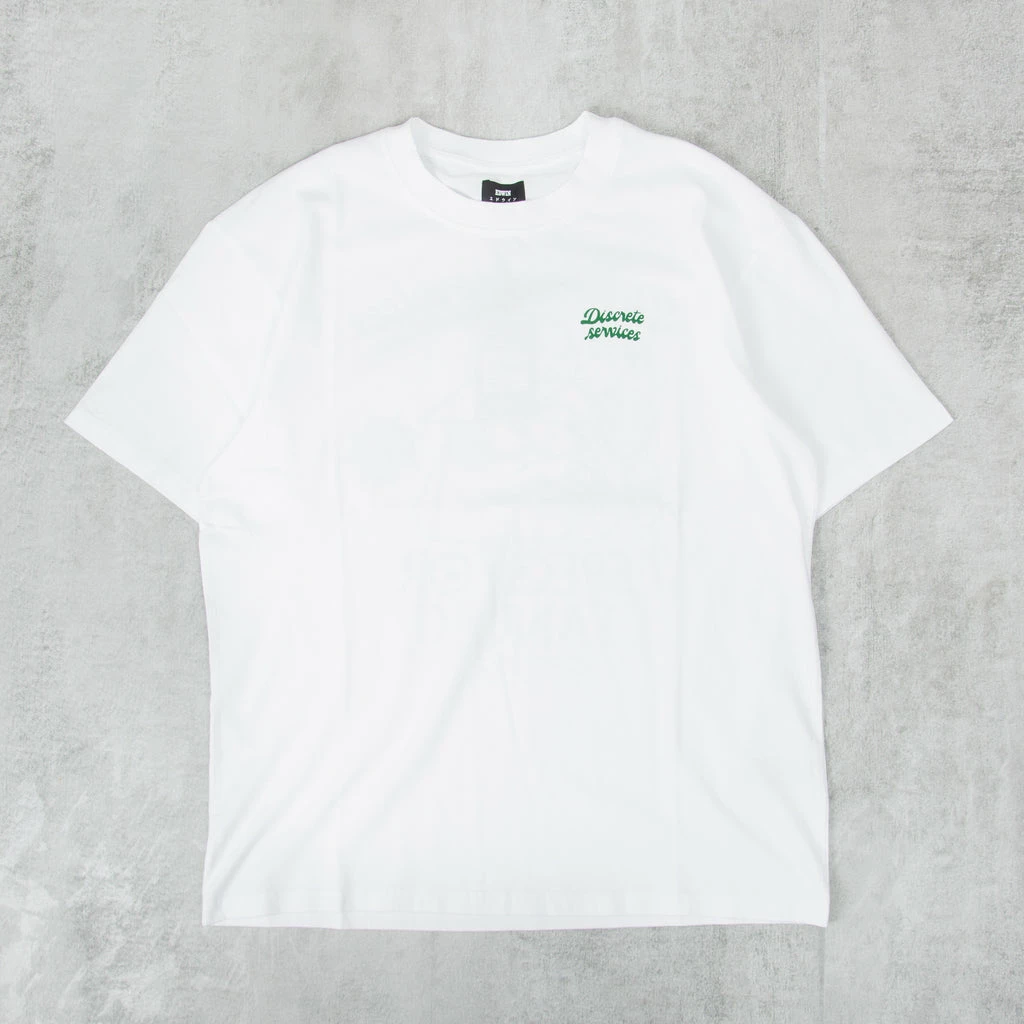 Edwin Discrete Services Tee – made from a comfortable jersey of 100% cotton with a ribbed crew neck and exclusive Edwin graphic artwork to the chest and back.