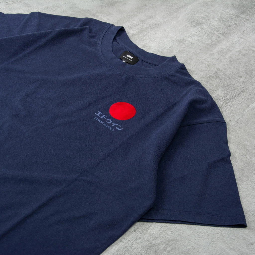 The print resembles the Japanese rising sun above the Edwin’s Japanese Supply logo.