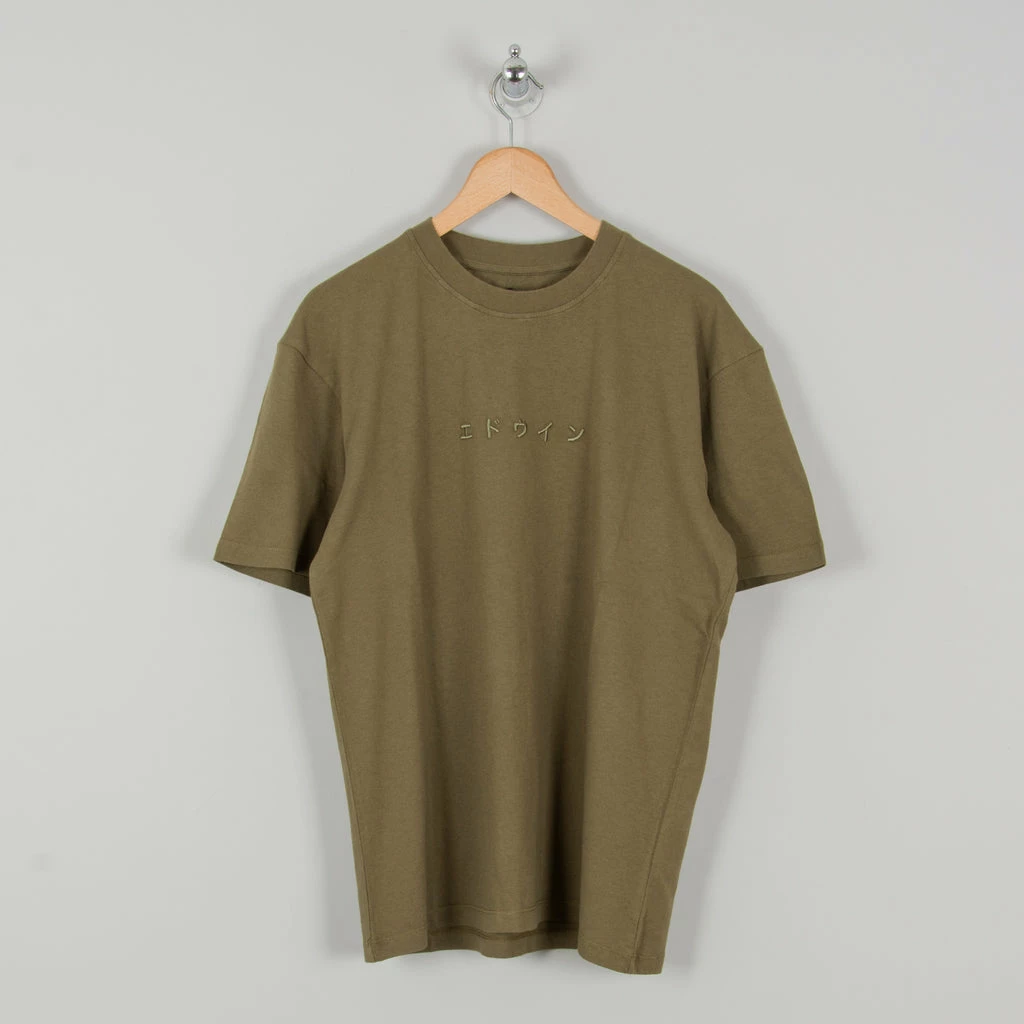Edwin Katakana Embroidery Tee - minimalist styling with this crisp white tee, front tonal Katakana-style embroidery. 100% cotton that’s cut to a slightly relaxed fit .