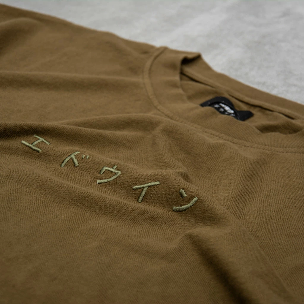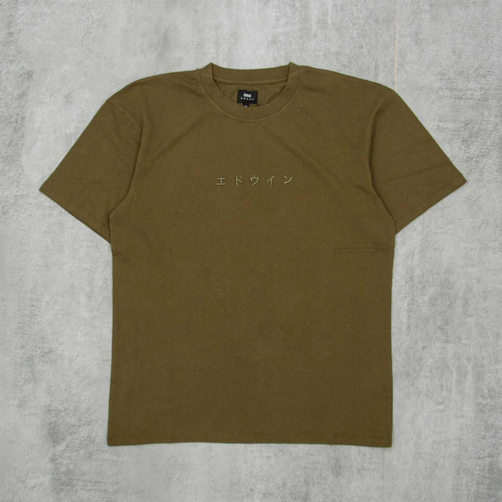 Edwin Katakana Embroidery Tee - minimalist styling with this crisp white tee, front tonal Katakana-style embroidery. 100% cotton that’s cut to a slightly relaxed fit .