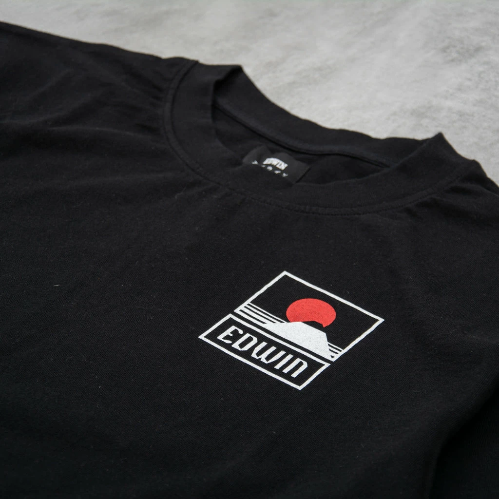 The Edwin Sunset On Mt Fuji L/S T-Shirt is a short sleeve, regular fit t-shirt that features a graphic of the sun setting over Mount Fuji…or maybe it’s the sun rising, but either way it looks smart.