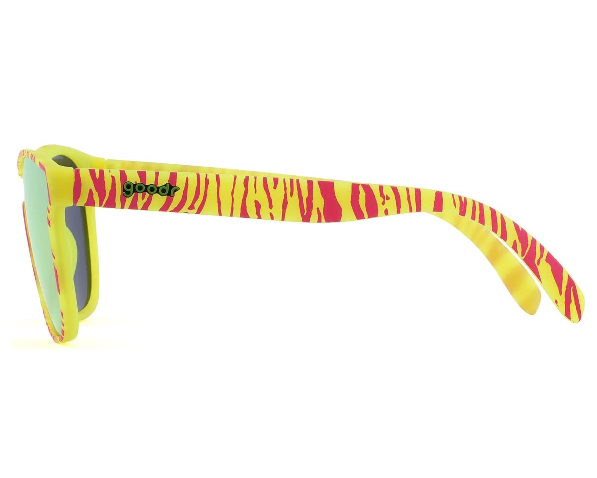 Ever since he stole a leopard-themed Lisa Frank binder from his classmate back in the 90s, it’s been Carl’s dream to open his very own Big Cat Sanctuary. It would be the perfect place to cuddle jungle cats and shoot epic country music videos rife with auto-tune and glittering exotic animal-print garb. Alongside his autographed CDs and photos, he would sell an exciting array of animal-print accessories in the gift shop, like these tiger-print Carl’s Big Cat Sanctuary VRG sunnies. They may not glitter, but they do glow in the dark!!! MEOW!!!