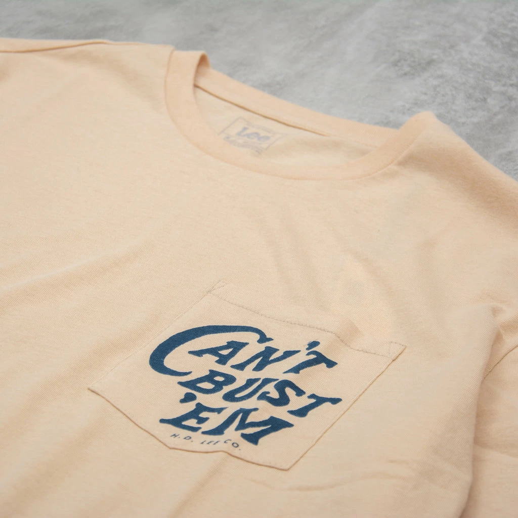 The Lee Can’t Bust’Em Tee is a vintage-inspired pocket tee in an original rough jersey fabric with retro ribbed neck and an easy, regular fit. Features a vintage graphic.