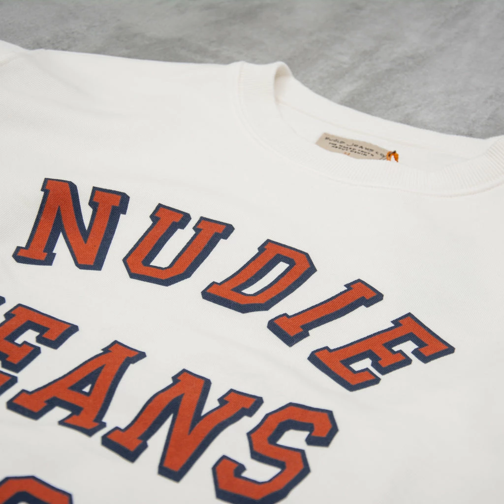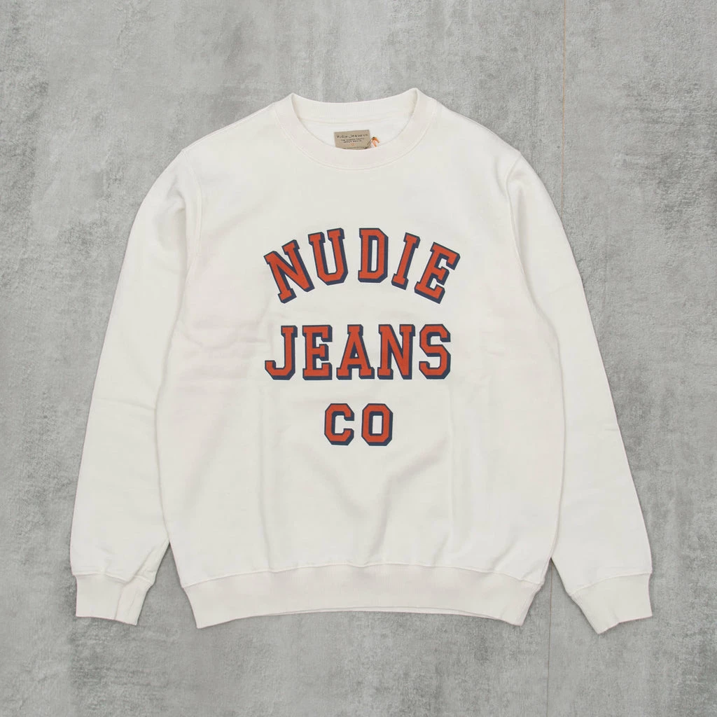 Nudie Lasse Nudie Jeans Co Sweatshirt – Regular, boxy fit crew neck sweatshirt made with organic cotton with a big logo print on the chest.