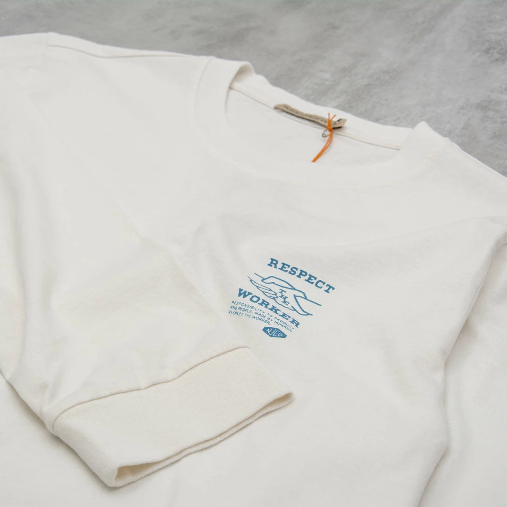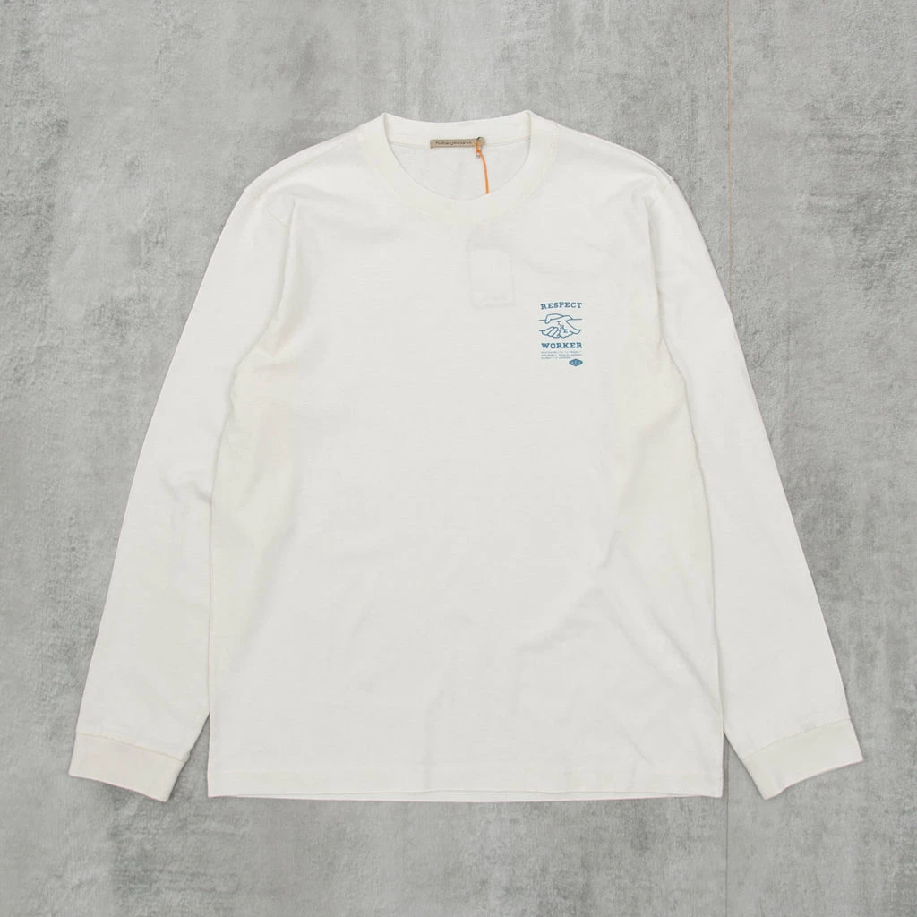 Nudie Rudi Blueprint L/S Tee Relaxed fit crew neck, long sleeve tee made in organic cotton jersey, with a powerful print on the chest and some poetry on the back.