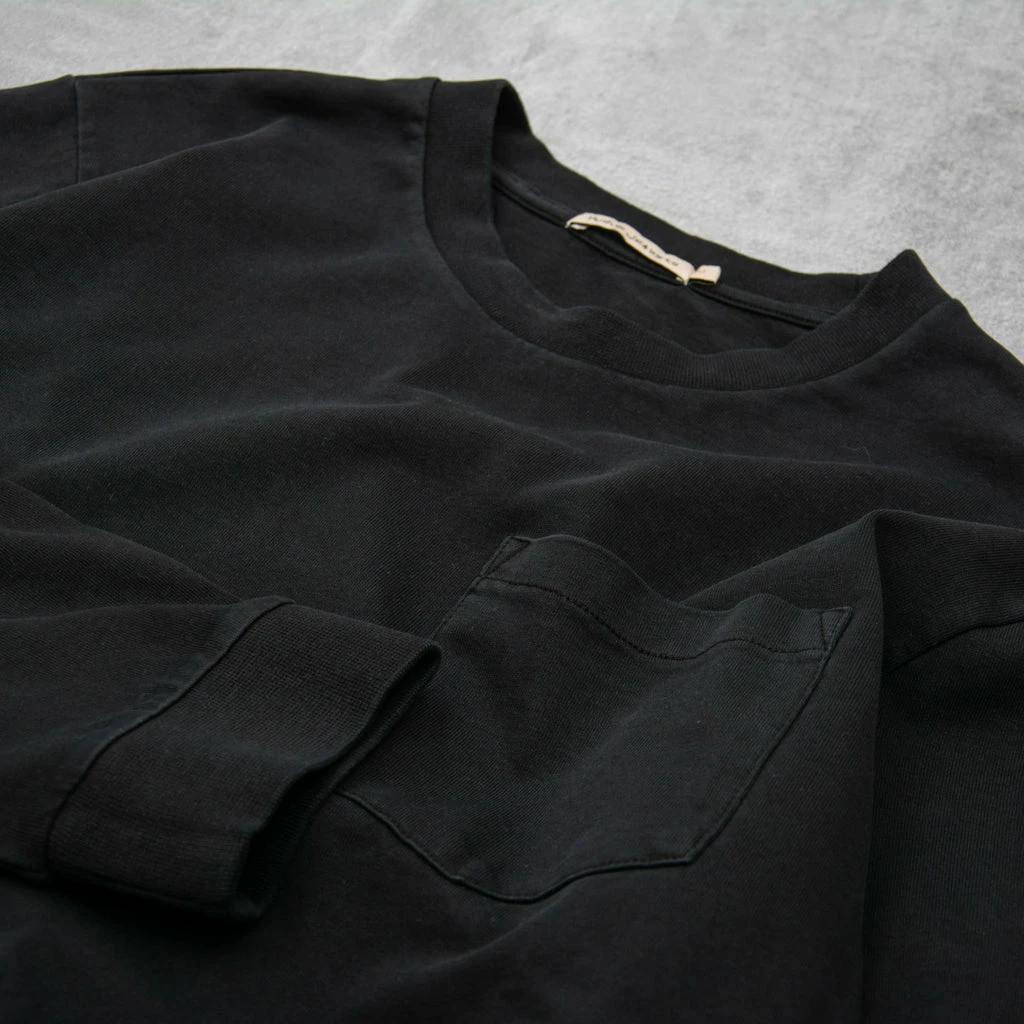 The Nudie Rudi Pocket Heavy L/S Tee features a clean crew neck, relaxed fit in soft jersey cotton, small external label on bottom hem and a patch pocket on the chest.
