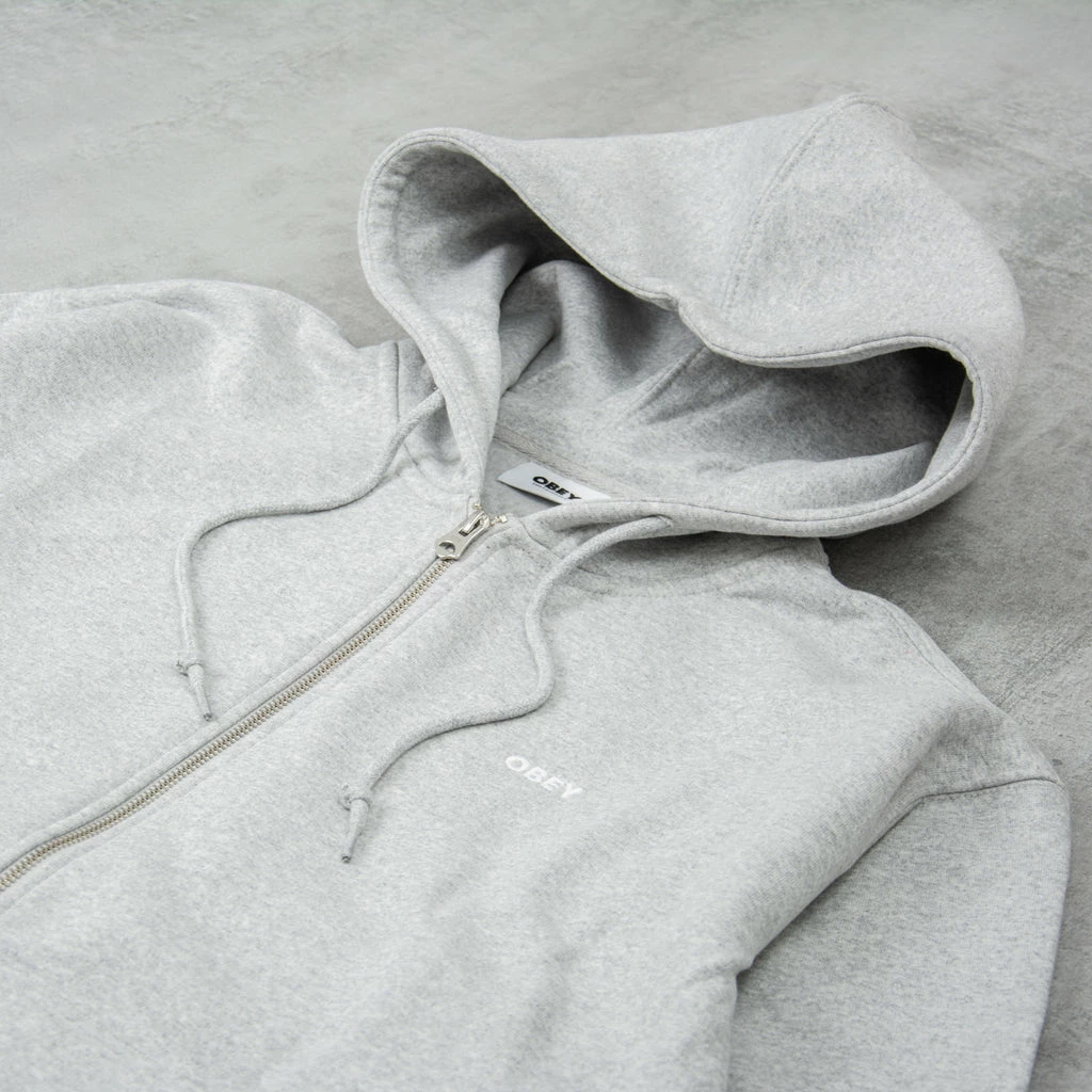 The Established Works Bold ZipHood in Ash Grey a premium weight zip up style with bold obey embroidery to the design. This is ultra comfort in full effect.