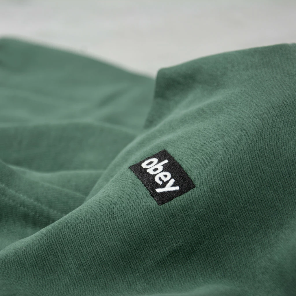 The Obey Mini Box Logo Hood in Dark Cedar a premium weight overhead style with an embroidered logo to the chest, your perfect chilling partner.