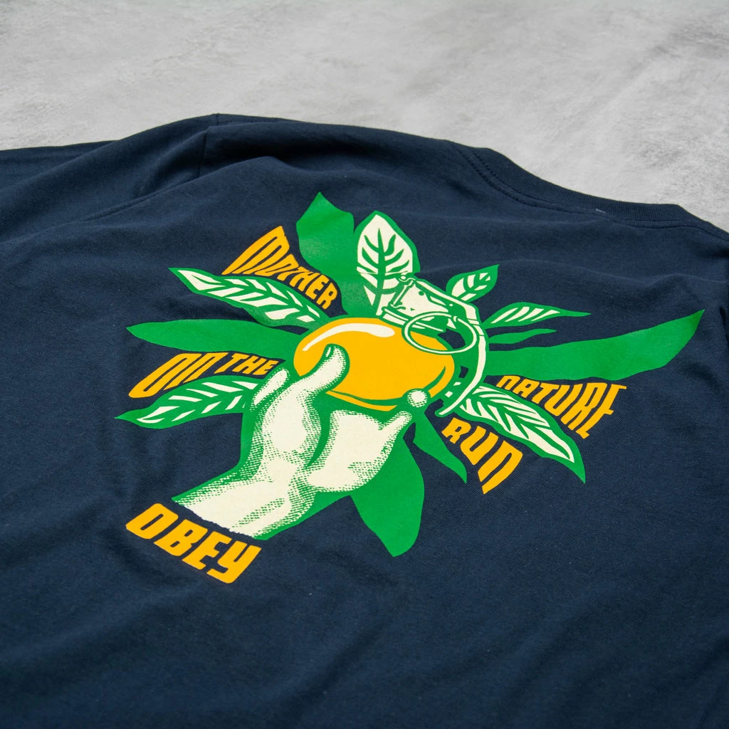 Obey Nature On The Run Tee in Emerald Regular fit crew neck T-Shirt with solid rib neck trims and heavyweight construction featuring a staple Obey archive print.