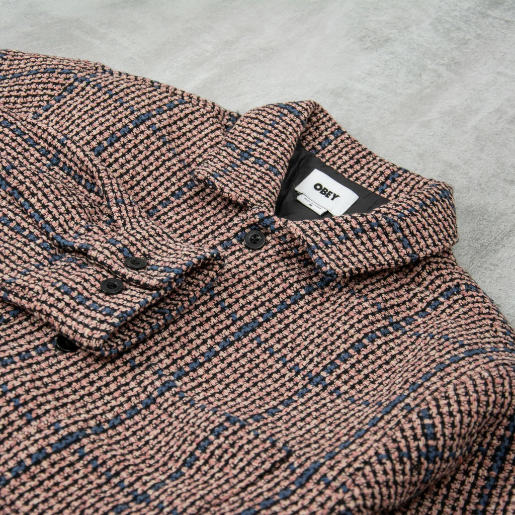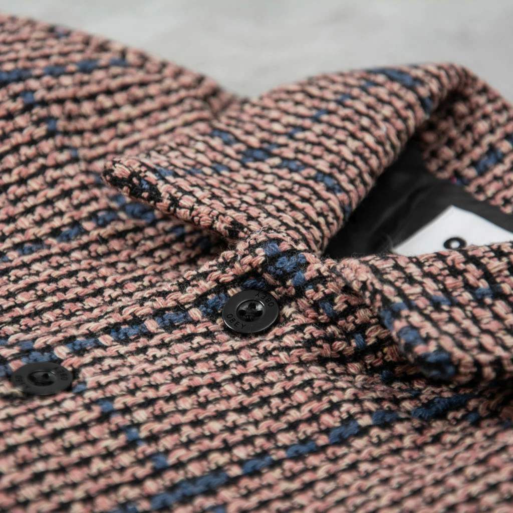 Obey Roni Shirt Jacket Heavyweight woven design that gives an artisanal approach to the typically woven designs of the brand. 100% polyester application with a light liner. Tab collar and lateral pockets finish this design. Regular Fit.