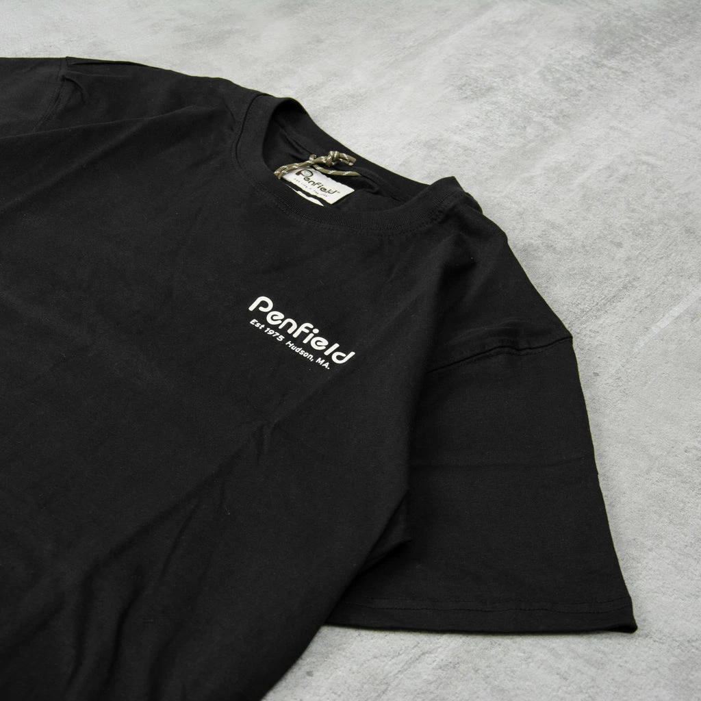 The Penfield Hudson Script Tee is a classic short-sleeved T-shirt for men, crafted from high-quality 100% cotton for enhanced durability and comfort. Its ribbed crew neck collar and p bear side tab offer a unique aesthetic, while the statement chest print logo to the left chest complements the classic look.