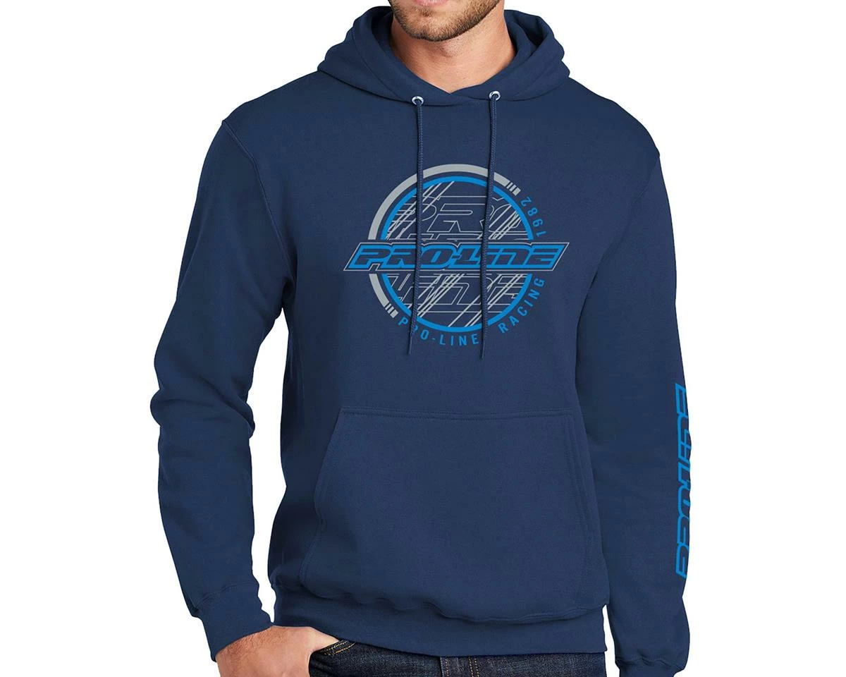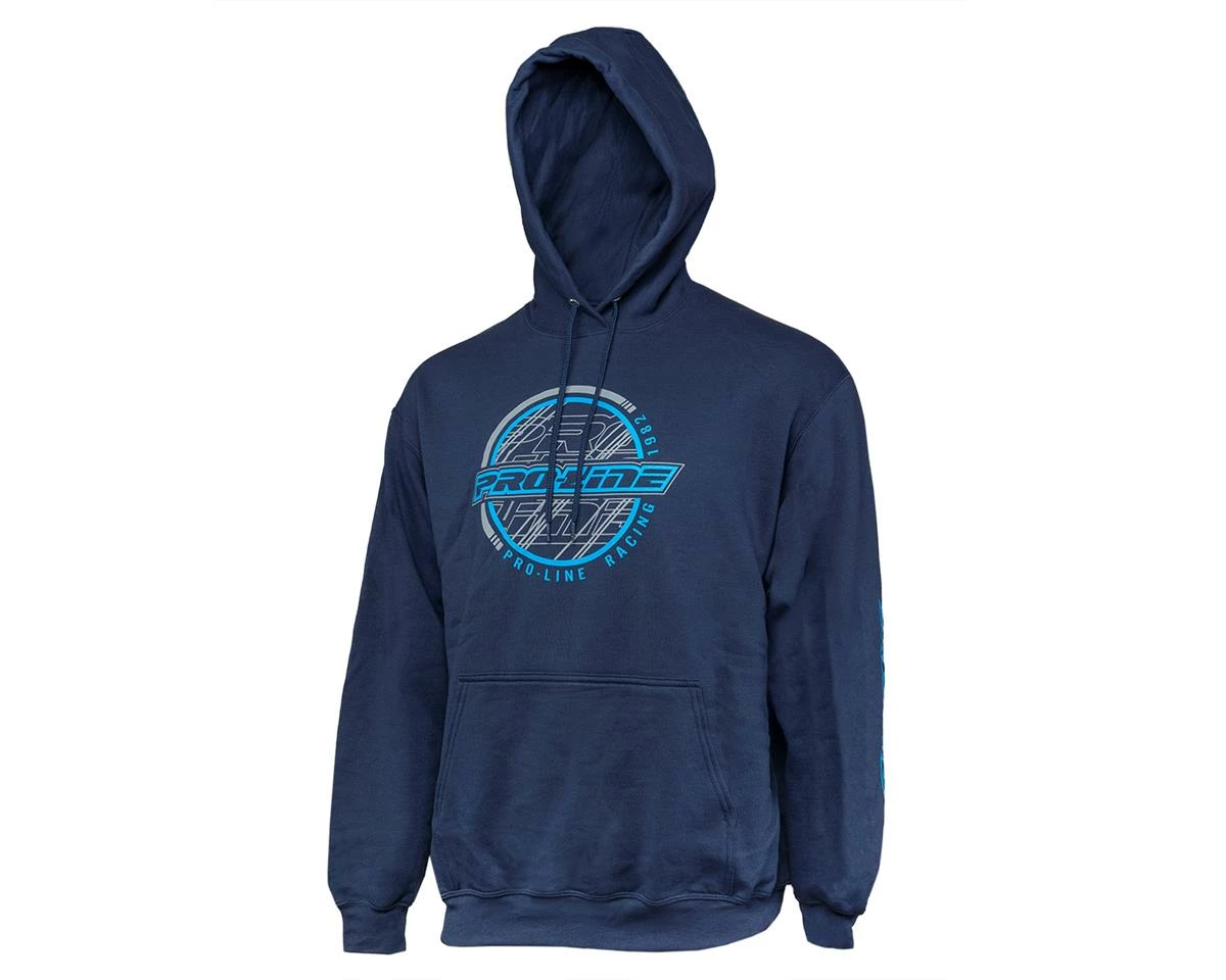 The Pro-Line Sphere Hoodie is perfect for chilly days at the track! Featuring a large Pro-Line logo on the chest and the Pro-Line name on the left sleeve. This Navy Hoodie Sweatshirt will show off your Pro-Line pride everywhere you go. This sweatshirt is available in multiple sizes. Please select the size you need from the list above. Package includes one sweatshirt.
