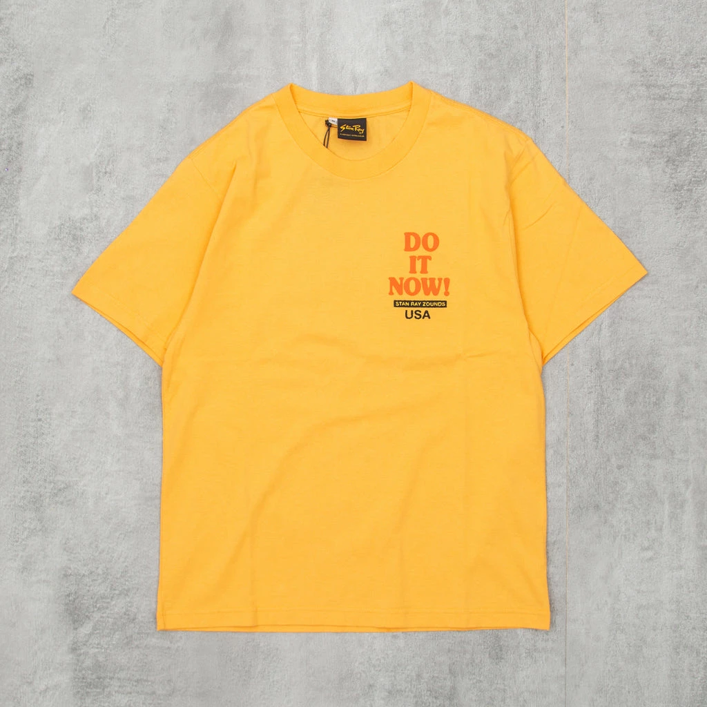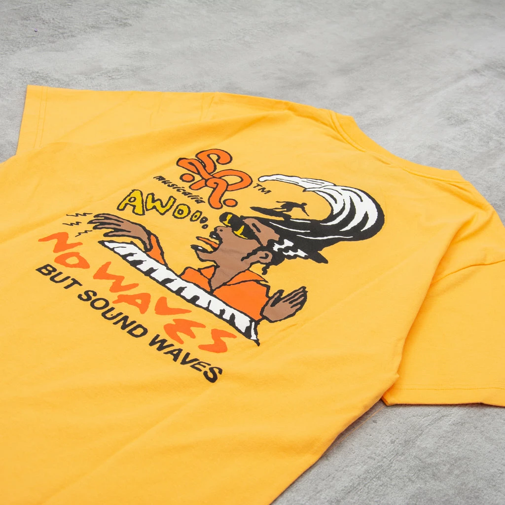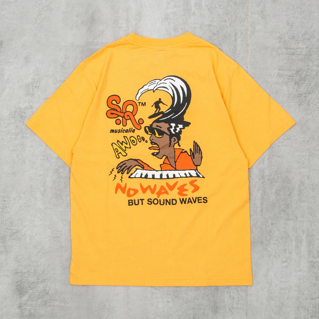 Stan Ray Sound Waves SS Tee in Old Gold is a 220gsm tight weave jersey featuring a screen print at the front left chest and large back print.