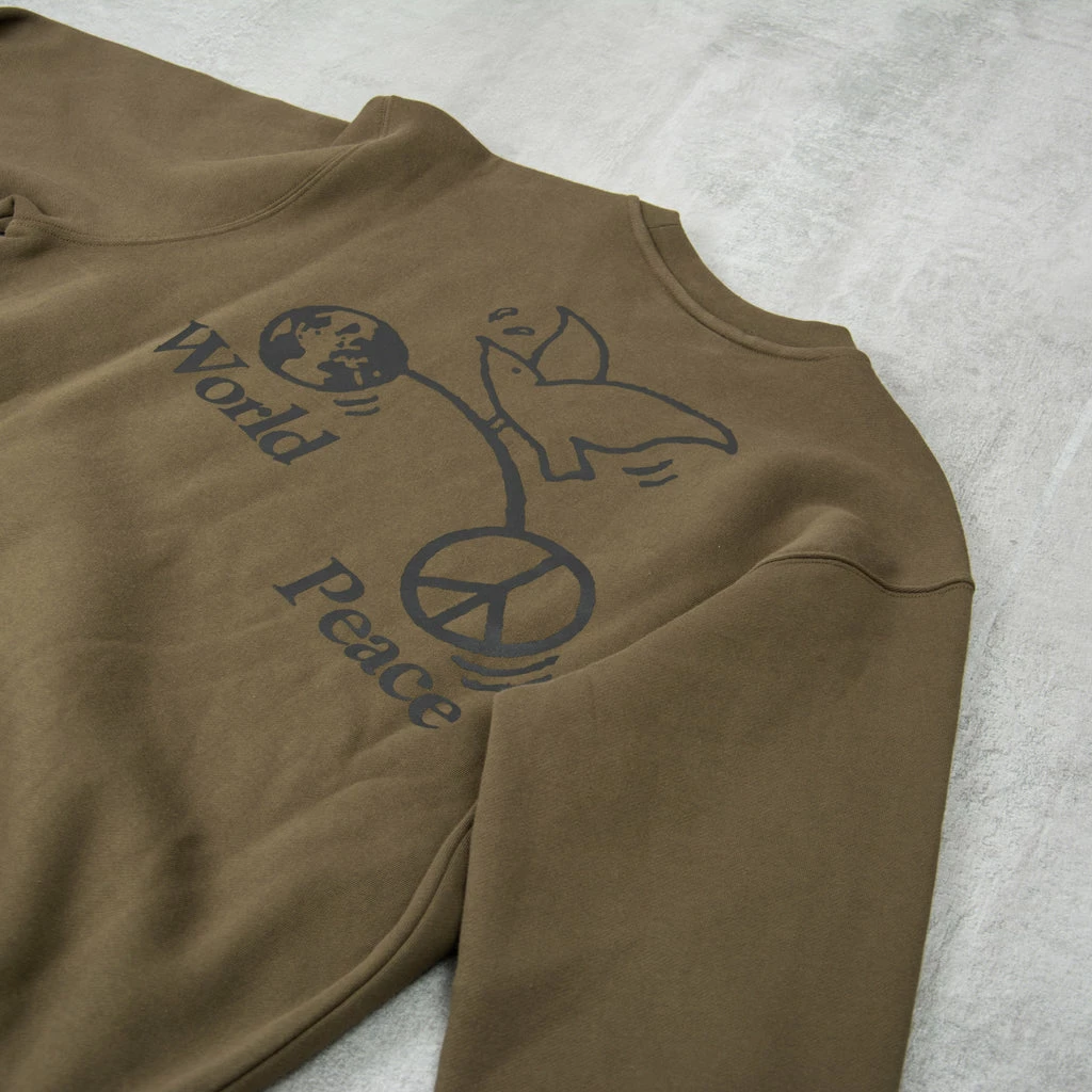 Stan Ray World Peace Crew in Olive Green Classic crewneck design on a premium heavyweight sweatshirt. World peace graphics across the design.