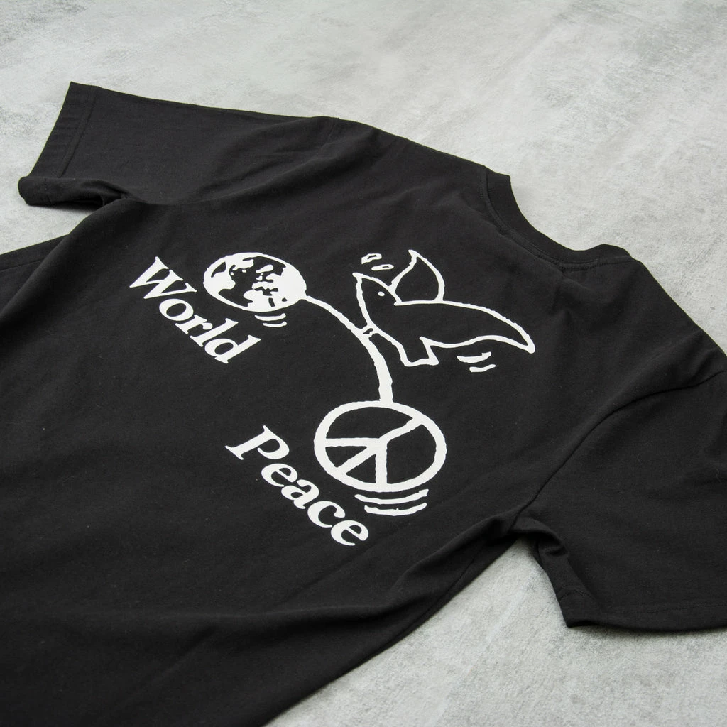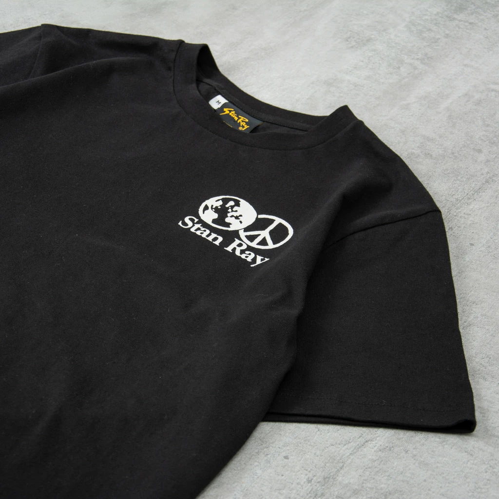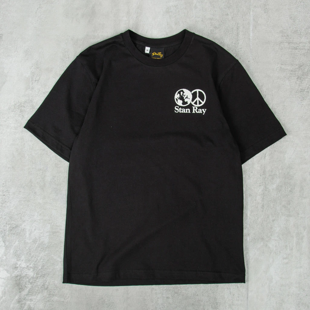 Stan Ray World Peace Tee in Black is a premium 220gsm short sleeve pocket tee with screen print at front left chest & Large Back print in 100% cotton. Made in Portugal.